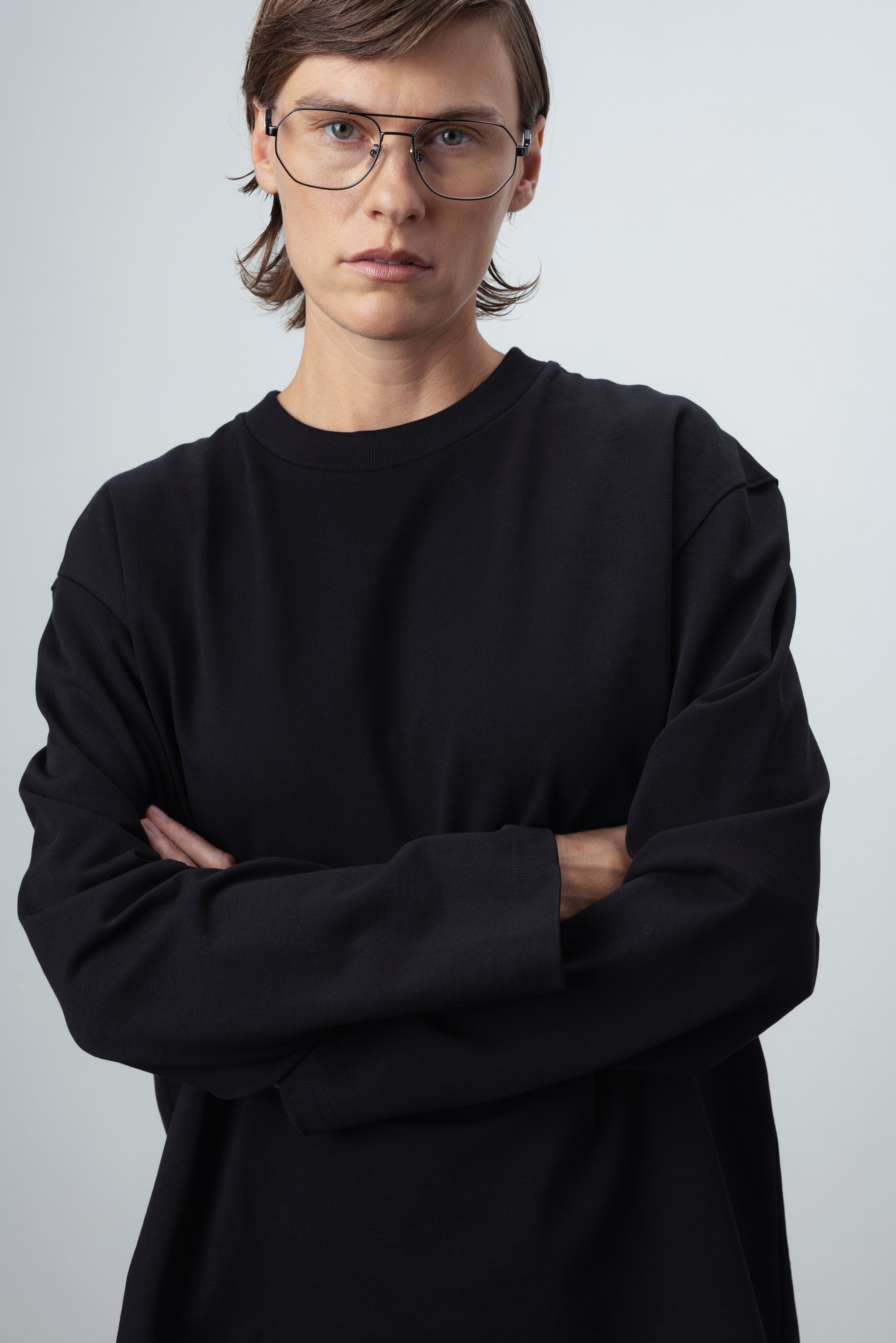 A relaxed essential crafted from solid organic cotton. Designed with dropped shoulders and relaxed silhouette, this long-sleeve top offers comfort and quiet sophistication for everyday wear. Finished with a subtle tone-on-tone FLOW monogram embroidered on the back — a discreet nod to the brand’s signature understated aesthetic.