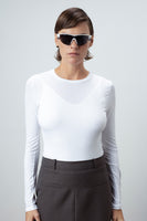 A second-skin essential designed for modern layering. Crafted from a soft lyocell blend fabric, this semi-sheer crew neck top feels weightless against the body. Layered with a body top underneath it creates a refined, feminine silhouette and embodies the FLOW FEMME philosophy — minimal and endlessly wearable.