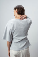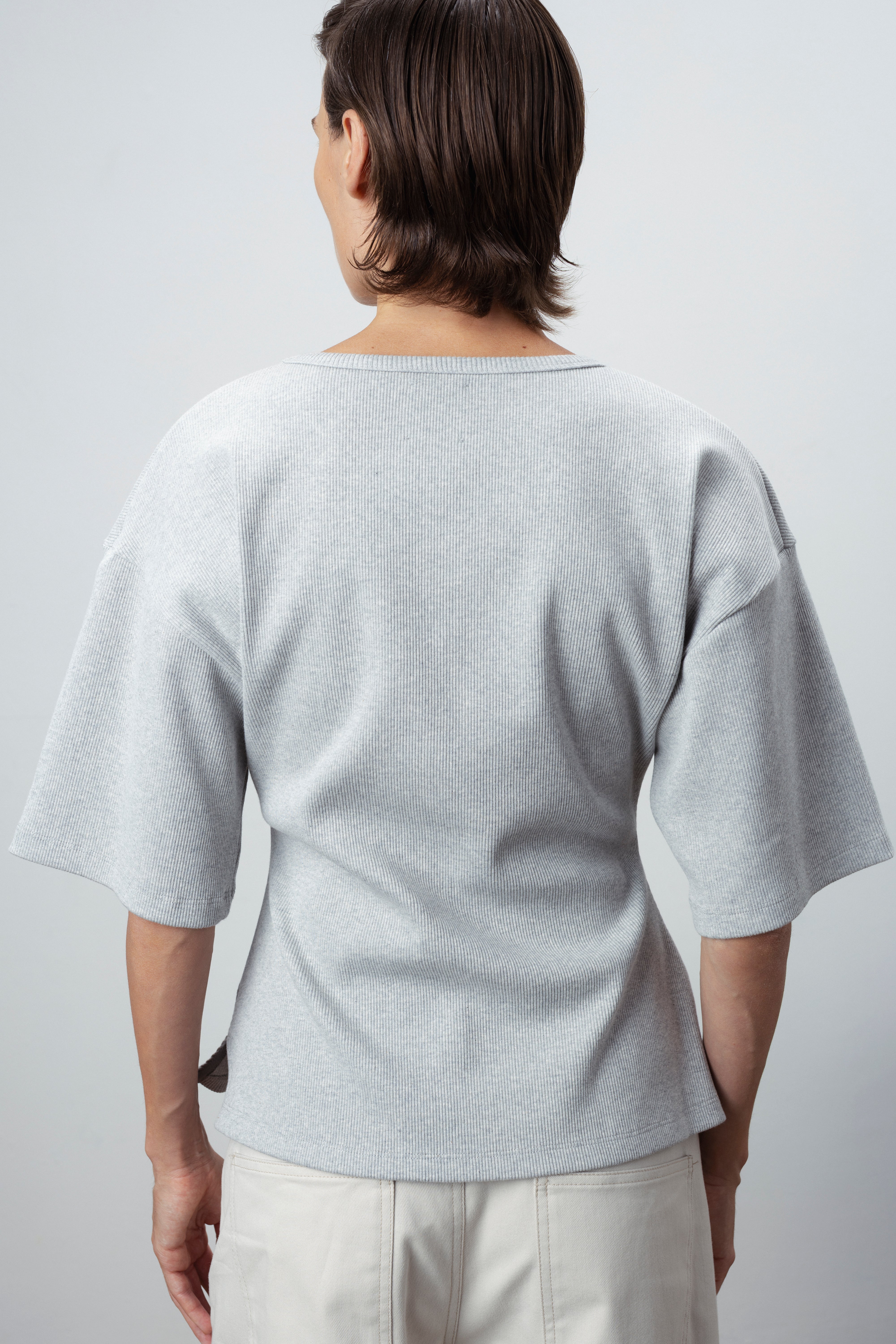 A refined take on casual comfort. This kimono-inspired top is crafted from solid ribbed cotton, designed to gently contour the body while allowing ease of movement. With its slightly structured silhouette and wide short sleeves, it transitions effortlessly from laid-back moments to elevated everyday wear — a minimalist essential in true FLOW FEMME spirit.