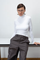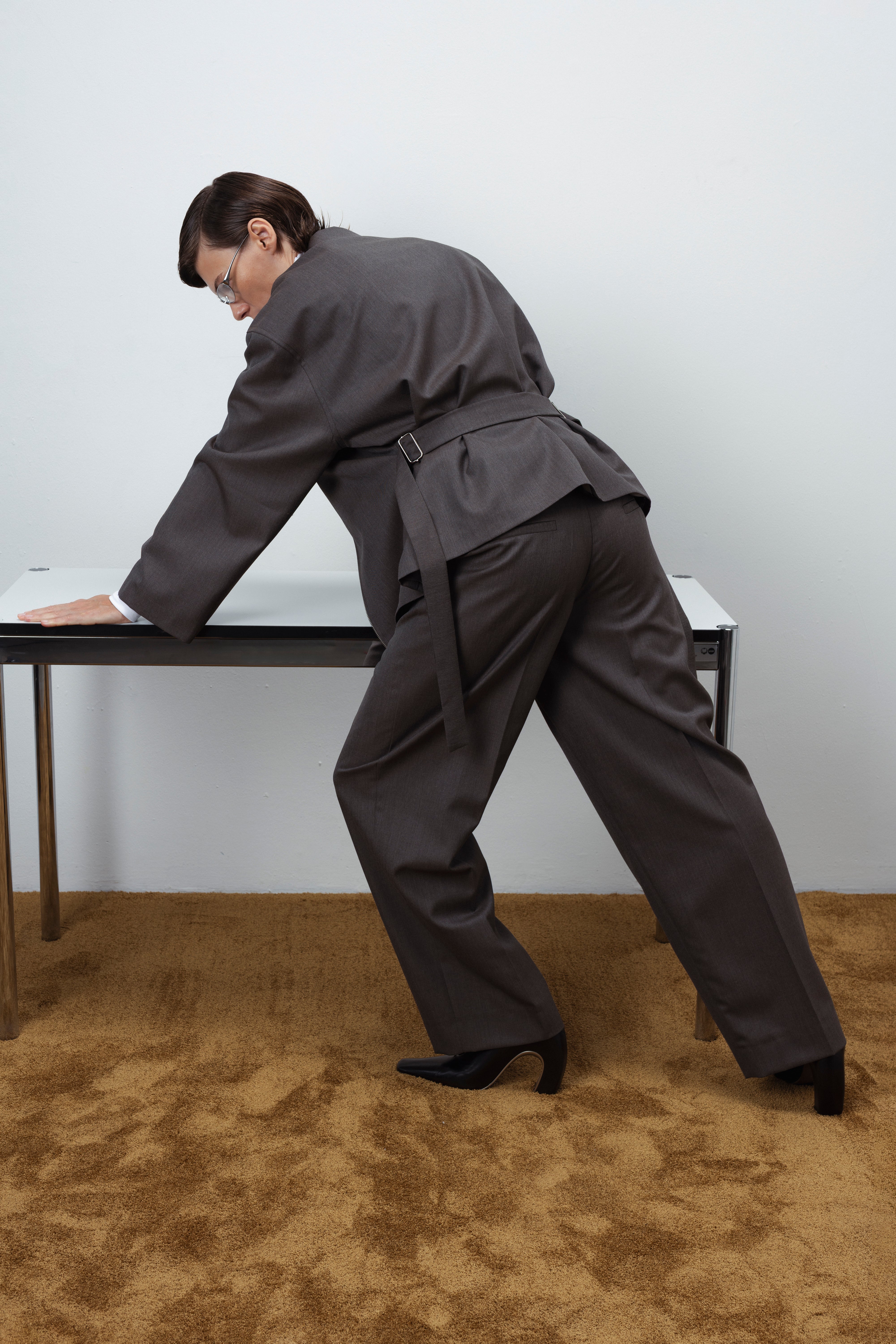 Tailored for the FLOW FEMME Autumn/Winter collection, these straight trousers are crafted from a refined wool blend fabric. Their relaxed yet sharp silhouette offers timeless versatility — perfect for everyday wear or elevated dressing. Style them with the matching Zip-Up blazer for a complete modern uniform that embodies quiet confidence and effortless sophistication.
