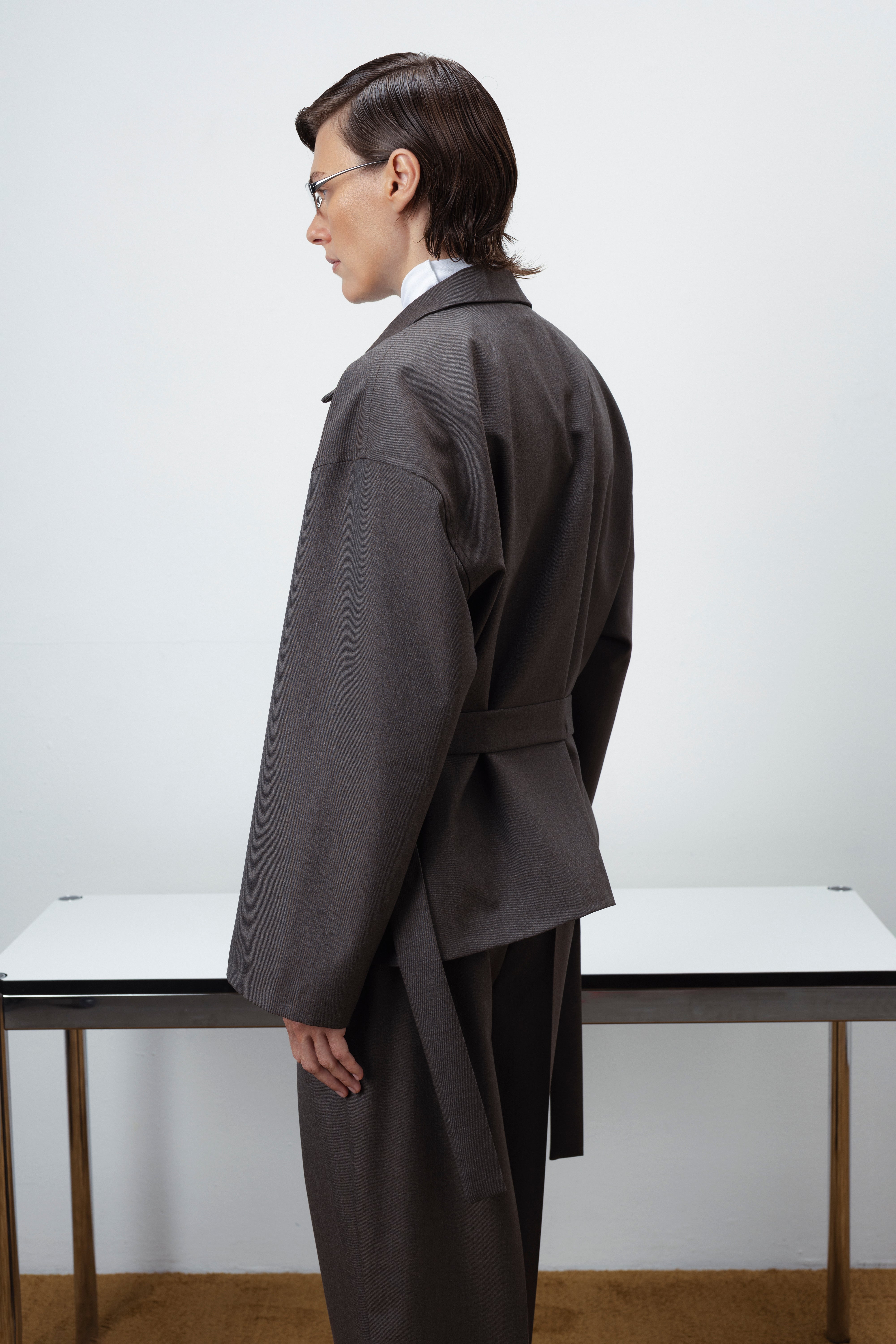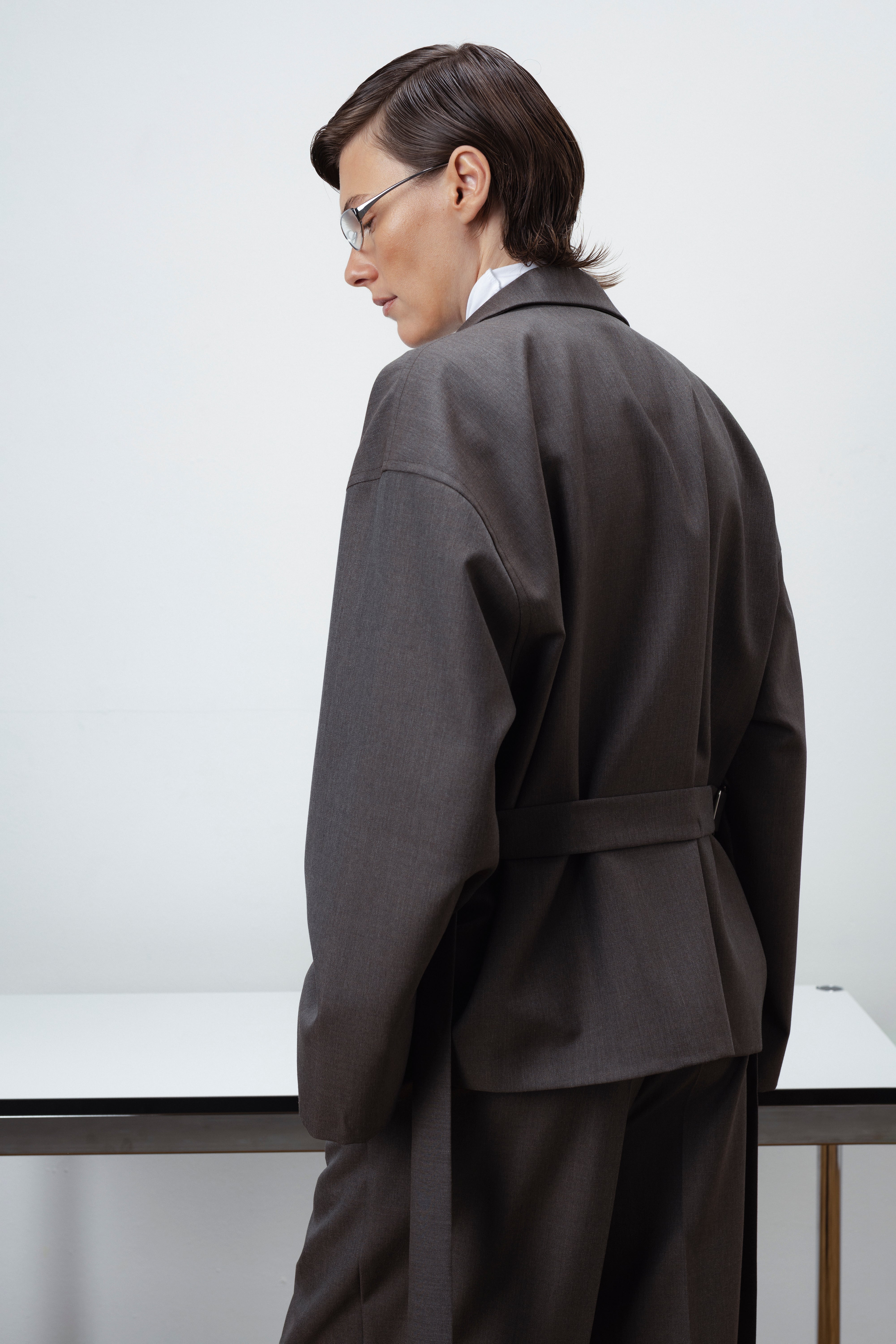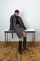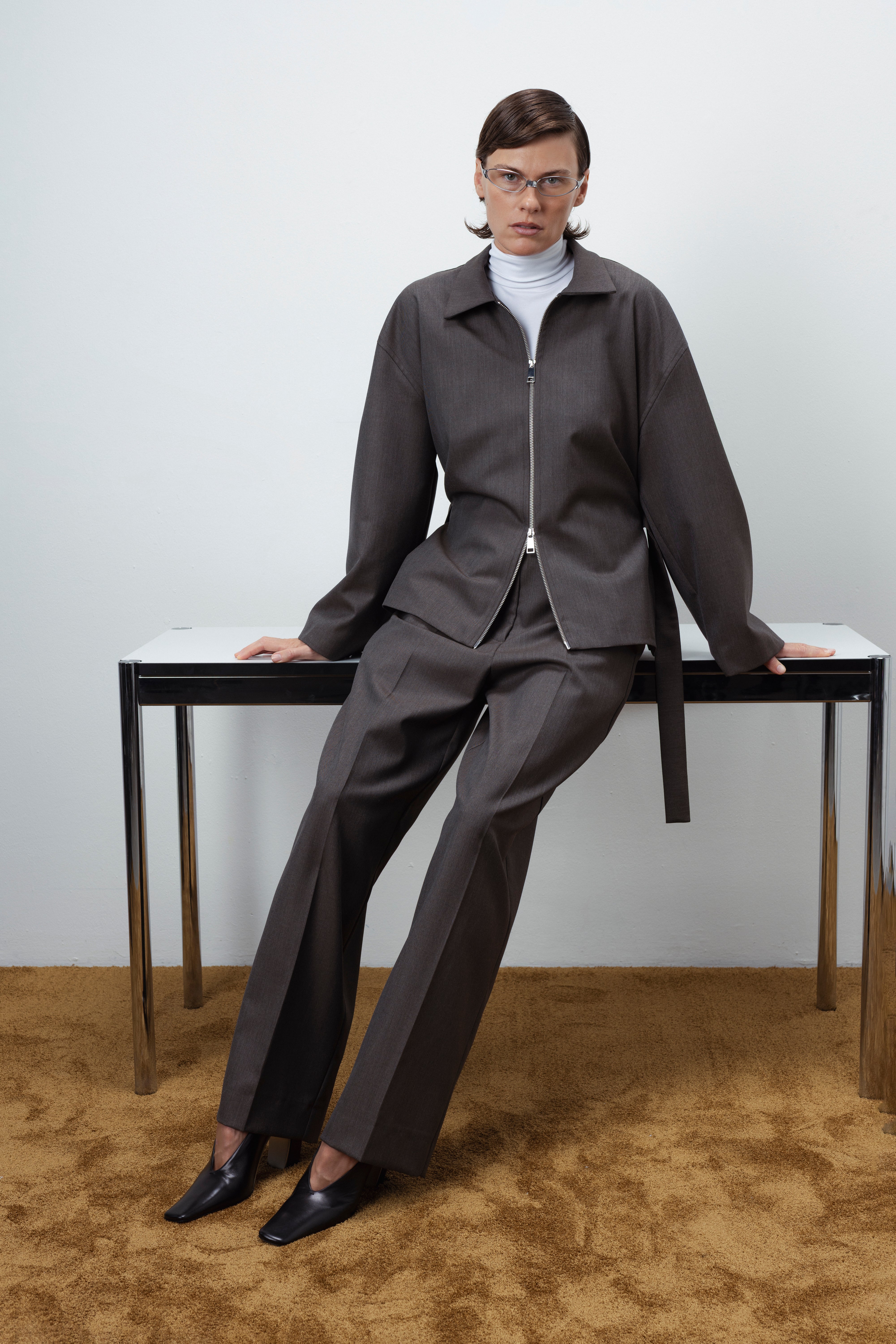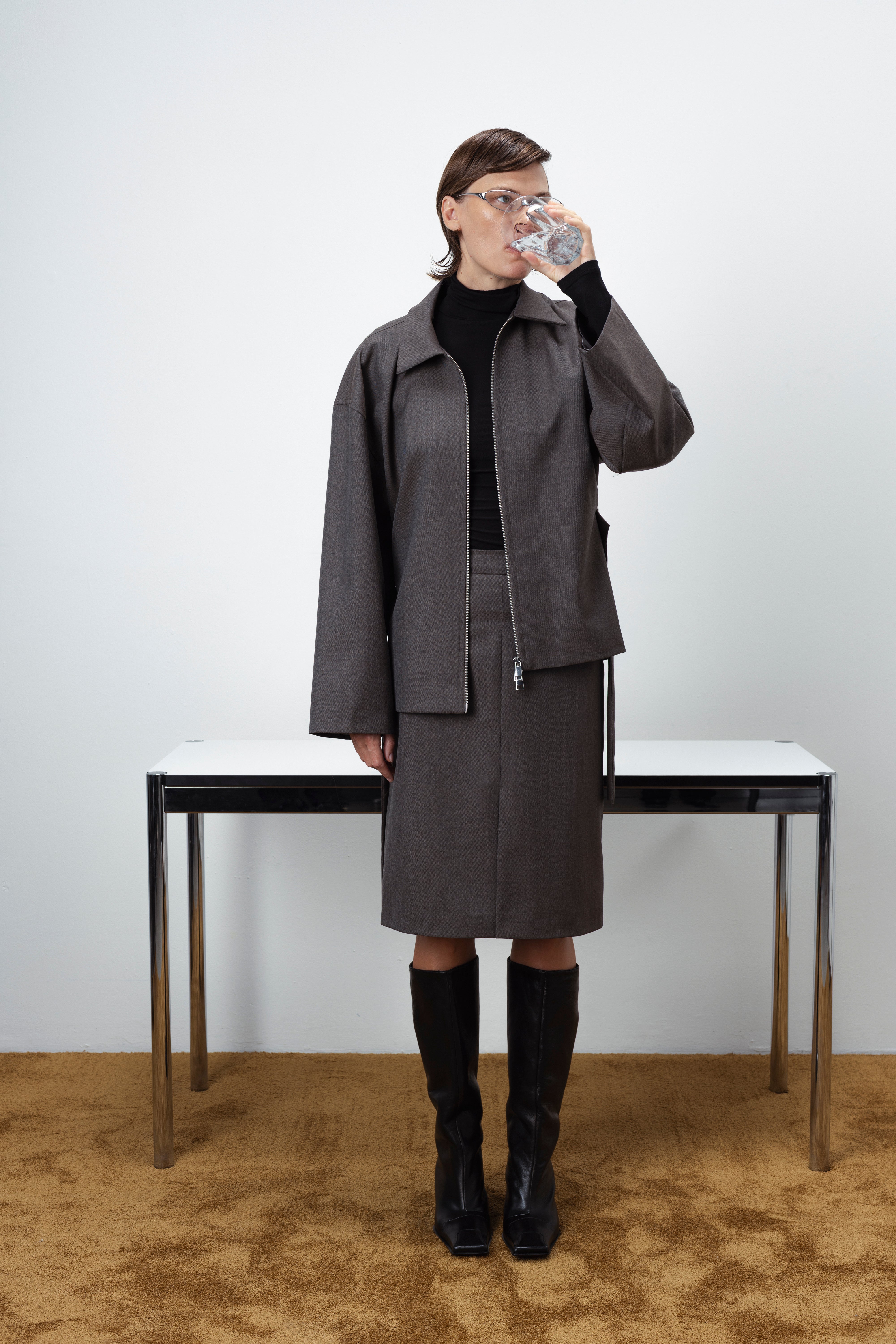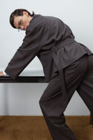 A refined essential from the FLOW FEMME AW collection. Tailored from a premium wool blend fabric, this Zip-Up jacket balances clean structure with effortless ease. The adjustable back belt lets you define your silhouette — wear it fitted or relaxed, depending on the moment. Pair with matching trousers or skirt for a complete tonal look that feels both modern and timeless.