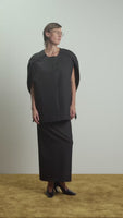 The core piece of the FLOW FEMME AW collection — a sculptural Cape that embodies strength and modern minimalism. Crafted from black wool blend fabric, it features padded wide shoulders that create a bold, architectural line while maintaining a soft drape. Designed for versatility, it can be worn solo as a statement piece or layered over turtlenecks and crew necks. Style it with the matching Maxi Skirt, Midi Skirt With Two Slits, or Straight Trousers for a complete, refined silhouette.