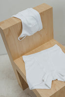 Minimalist boxer shorts designed for everyday ease. Cut from a soft bamboo–cotton ribbed blend fabric, they offer natural breathability, flexibility, and a smooth second-skin feel. With a high rise and a clean, streamlined fit, they bring a modern take on classic essentials.