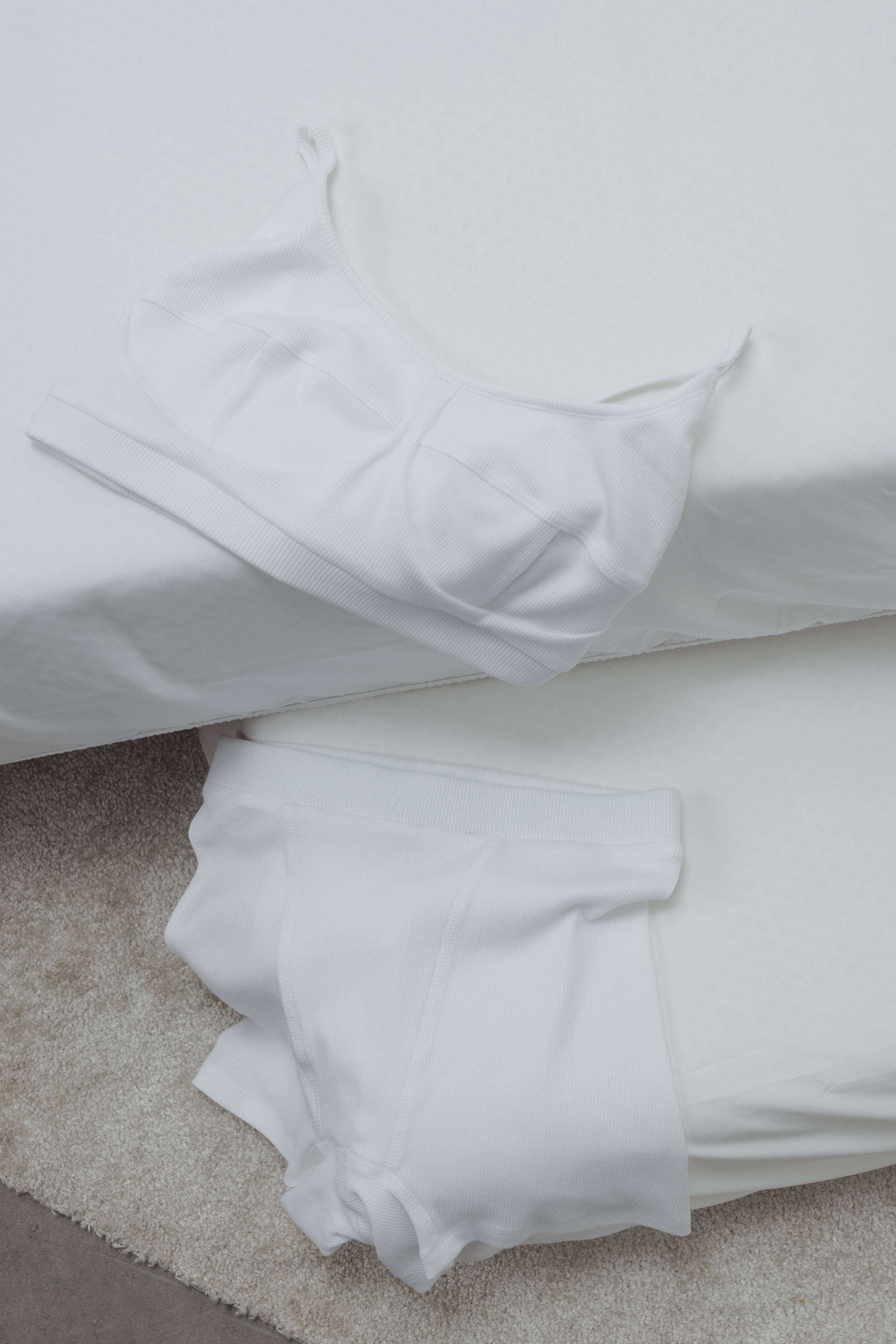 A modern take on an everyday essential. This bra is cut from a soft bamboo–cotton ribbed blend fabric that provides gentle support, breathability, and a smooth second-skin feel. The clean silhouette with delicate straps creates a minimal yet refined look, designed for both comfort and ease.