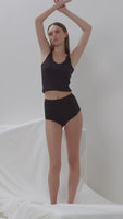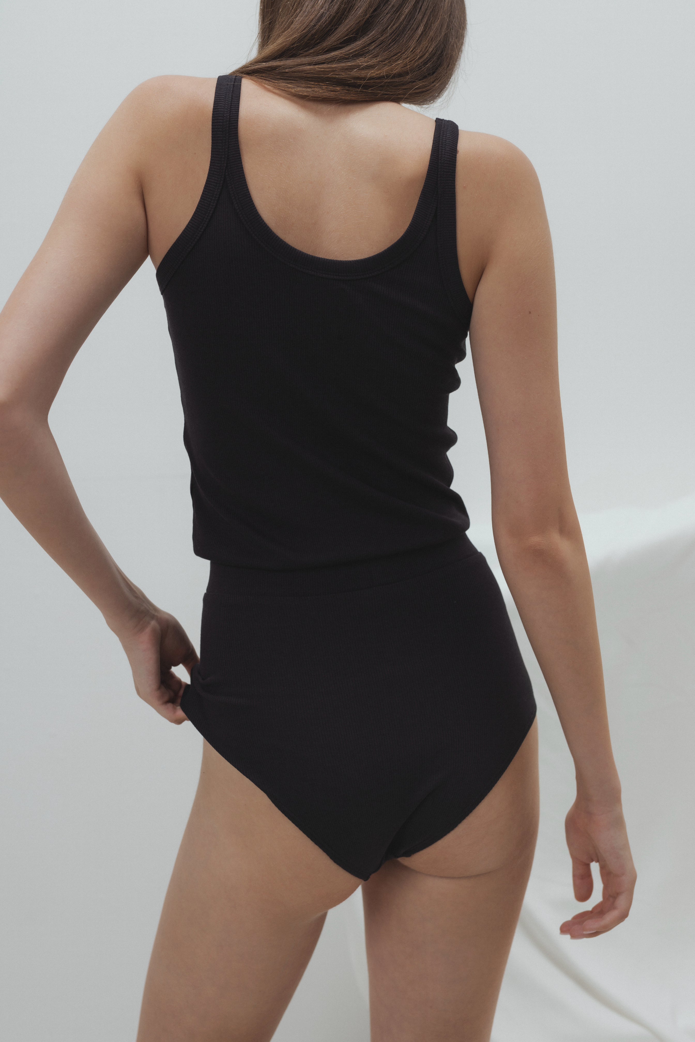 RIBBED BAMBOO HIGH WAISTED PANTIES IN BLACK