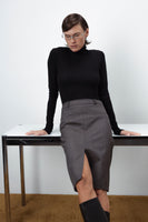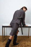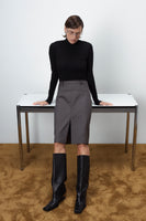 A refined piece from the FLOW FEMME Autumn/Winter collection, crafted from a premium wool blend fabric in a timeless taupe shade. The skirt features a straight tailored silhouette with a subtle front and back slits. Designed to pair seamlessly with the matching Zip-Up blazer, it creates a sophisticated total look that blends strength, femininity and modern simplicity.