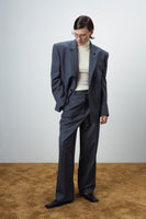 A statement piece from the FLOW FEMME Autumn/Winter collection — this tailored blazer is cut from a wool blend fabric, designed with broad padded shoulders and a subtly defined hourglass shape. The sculptural silhouette brings strength and precision to the classic form, blending timeless tailoring with modern attitude. Style it with the matching Straight Trousers for a complete suit ensemble that embodies effortless power and refined minimalism.