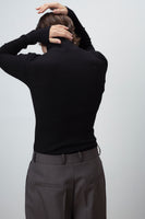 Crafted from a solid wool blend fabric, this turtleneck embodies the essence of minimal sophistication. Its structured rib knit gently contours the body, offering both warmth and refined texture. A timeless piece designed for versatility — wear it alone or layered under tailoring for a clean, modern silhouette that defines the FLOW FEMME aesthetic.